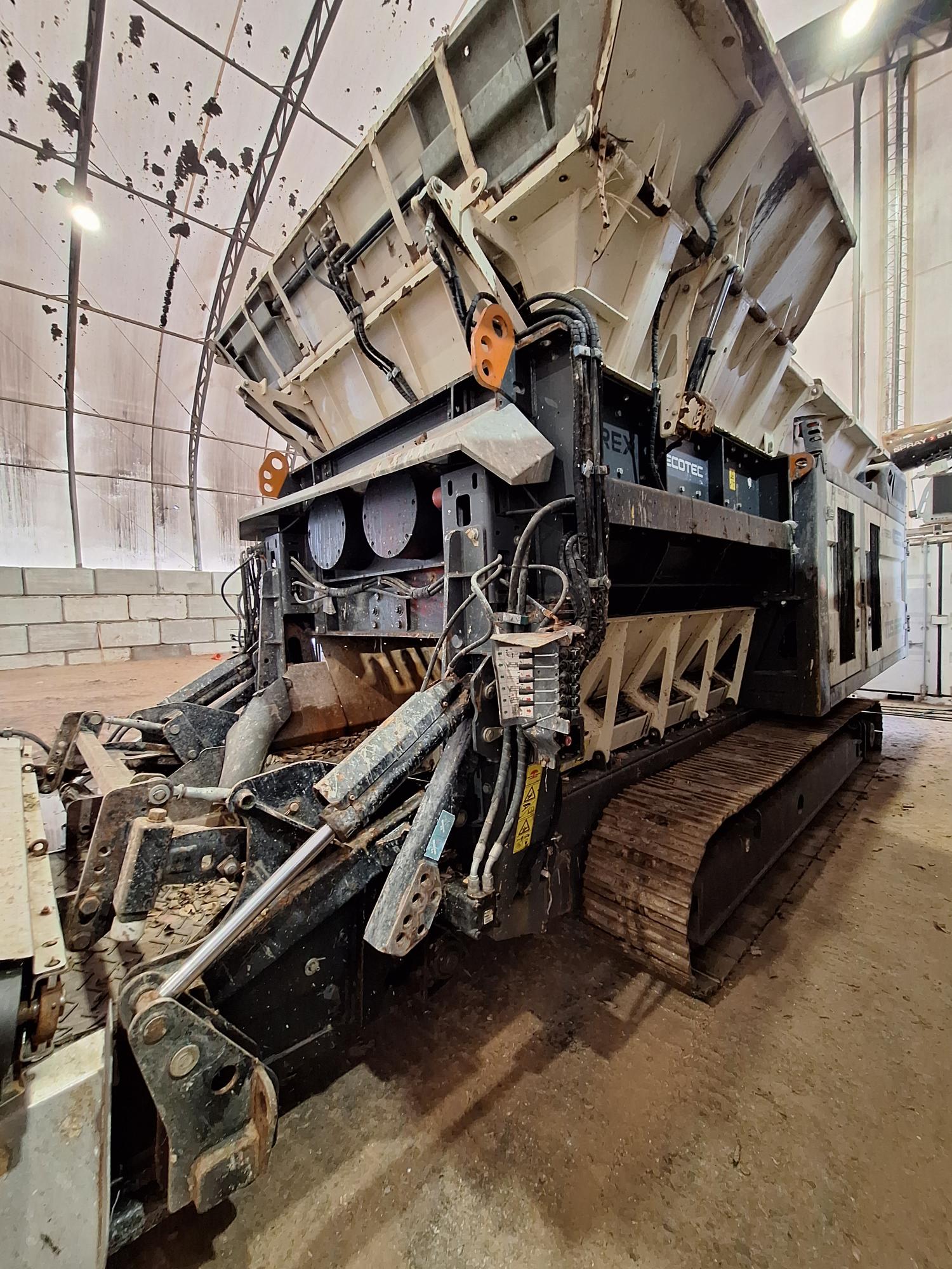 Key features include the hydrostatic drive which offers protection against contamination and allows for bi-directional shredding. The double shaft shredder has 2.5m long shafts made from solid steel, with a fully welded tooth configuration giving an extremely high production rate with excellent size reduction. Independent gearboxes enable each shaft to be run separately helping to reduce wrappage and improve the shredding of material. Should a blockage occur the shafts can be controlled via the radio remote control allowing the material to be repositioned before attempting to shred again. Powered by a 770HP Scania V8 DC16, the TDS 825 has been designed to provide operators with unrivaled levels of service access. The high volume, tipping hopper increases the feed area providing optimum material feed and can be activated using the control panel or via the remote control. Tipping cycle times can be configured to suit the application. Hydraulic folding hopper extensions allow for increased capacity, preventing the infeed material from falling out, especially in bulky applications. Quick and easy set-up from ground level is guaranteed taking a matter of minutes with no tools or working at the height required. The TDS 825 is maneuvered via a robust tracked undercarriage making it a great solution for difficult terrain.
