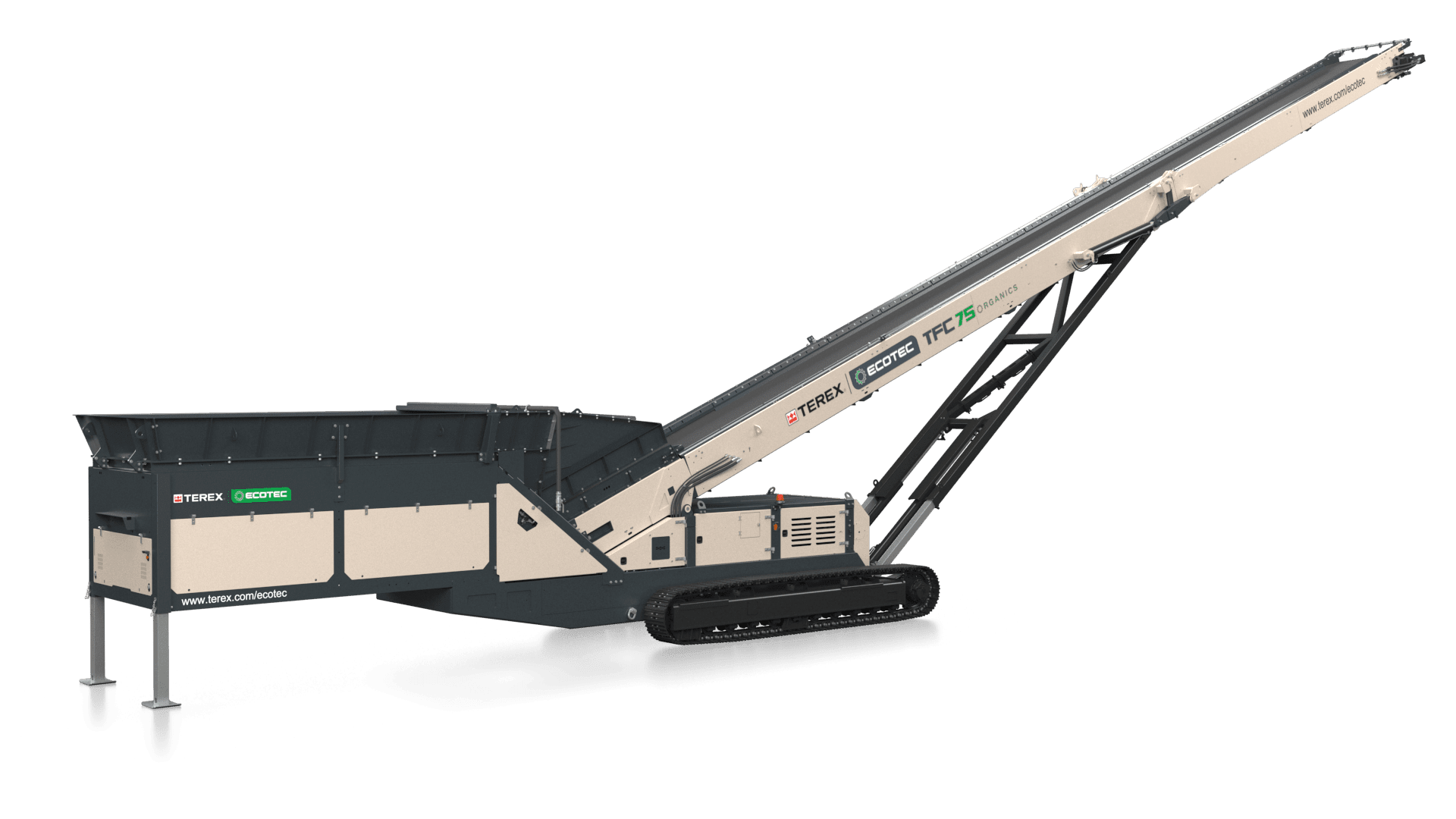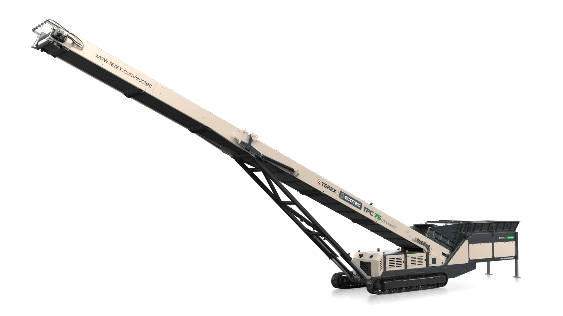 Designed specifically for the stockpiling and aerating of lower density, bulky materials such as soil, mulch, biomass, and compost, the TFC 75 organics high-level Feeder features an auger that flips and rotates the material untangling and separating it.