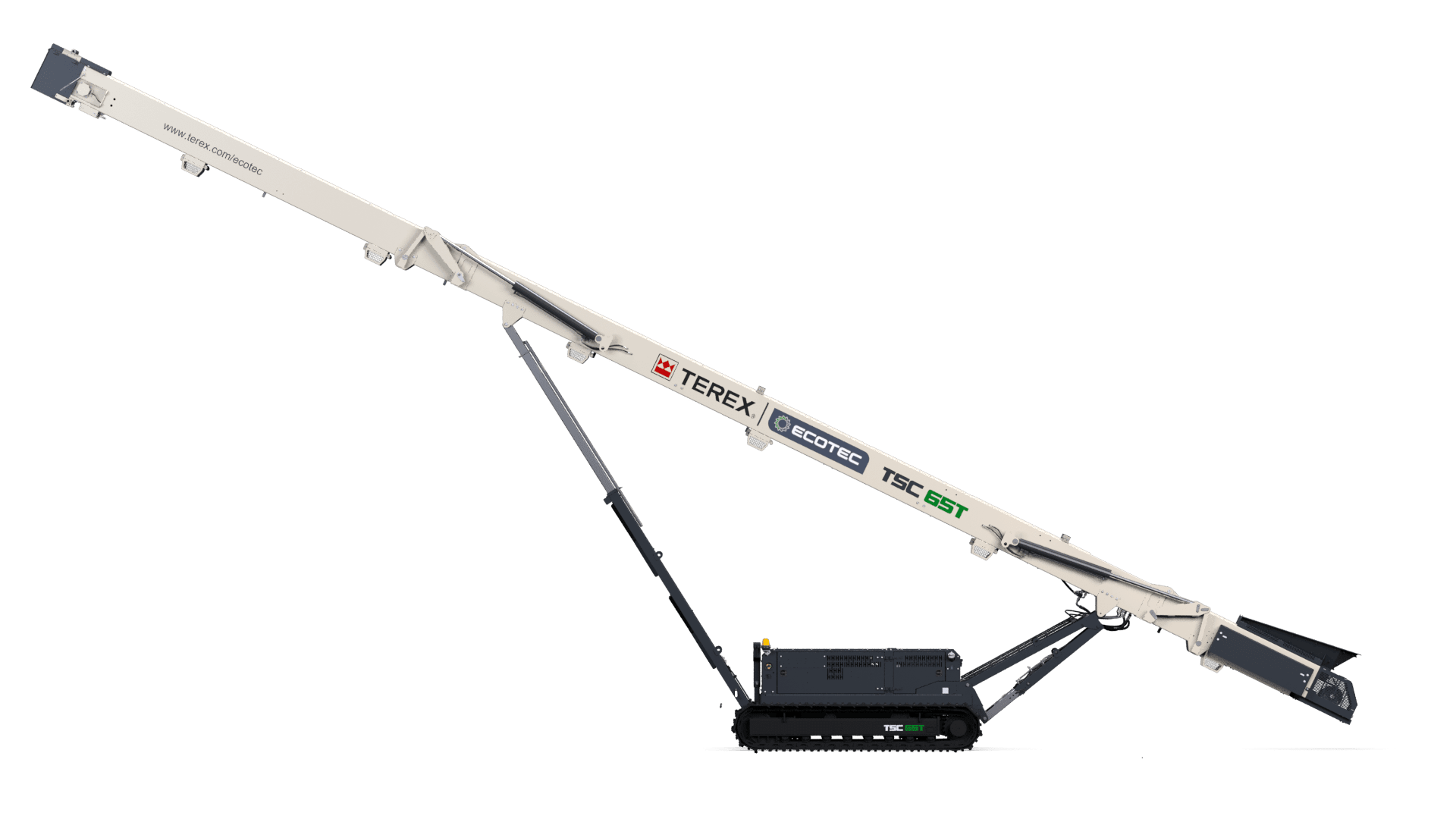 The track in and out design lets operators simply track the machine out and fold into the working position and start conveying material. Hydraulic angle adjustment and belt speed adjustment ensure optimum performance in every application. Maximum discharge height of 8.7m (28’ 6”) and capacities of up to 400tph position the TSC 65T as a leader in the industry.